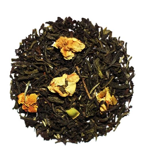 Un thé vert de Chine et une pointe de thé noir, aromatisé au jasmin, pétales de fleur, bergamote et vanille, accompagné d’une recette ancestrale d’épices douces gardée secrète. Un mélange précieux aux vertus relaxantes.