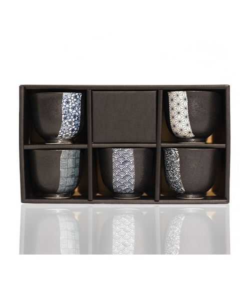COFFRET DE 5 TASSES YABU NOIRES ET BLEUES