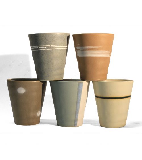 Un coffret de cinq mugs en grès d’inspiration marine rappelant le relief des coquillages des eaux salées.
