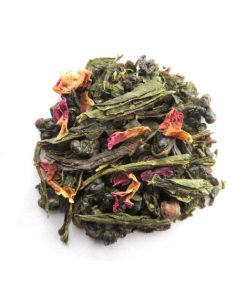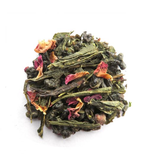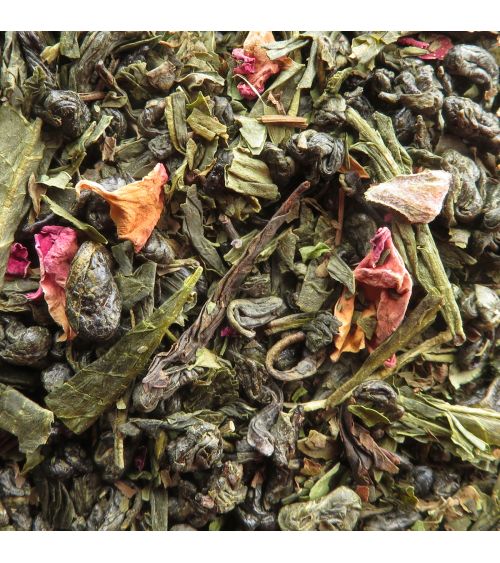 Un thé vert gunpowder, parfumé de menthe poivrée et de pétales de rose. À consommer chaud ou glacé l’après-midi.