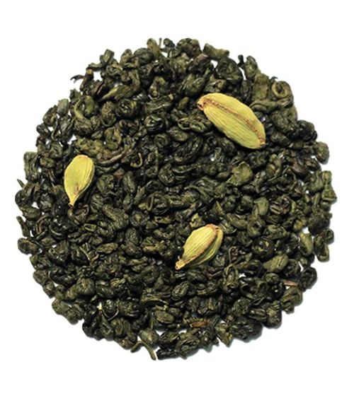 Expression de la tradition afghane : thé vert Gunpowder de Chine aux épices avec une dominante de cardamome verte.