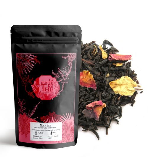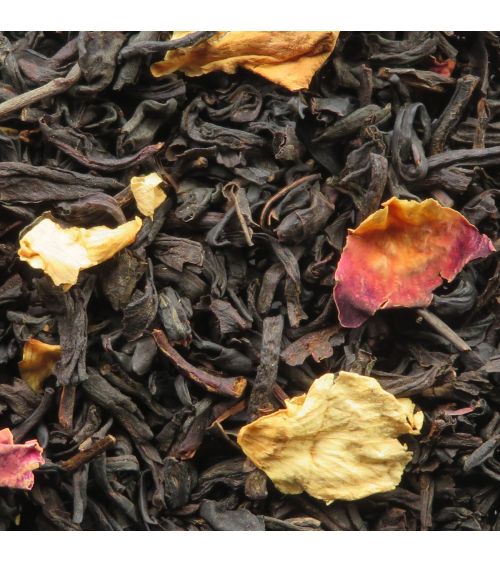 Un mélange sur une base de thé noir de Chine, aromatisé de pêche, abricot, vanille bourbon et rose.