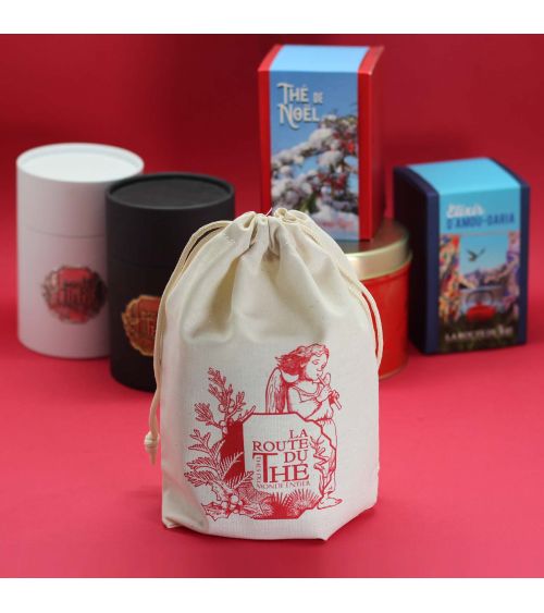 Notre petite pochette cadeau LA ROUTE DU THÉ est confectionné en cotton 100% BIO et est réutilisable.