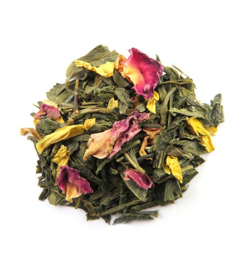 Un thé vert Sencha aux accents fruités et épicés de mangue, noix de coco, cannelle, gingembre, parsemé de rose. Un thé qui évoque la route des épices du Yémen. À servir chaud ou glacé l’après-midi.